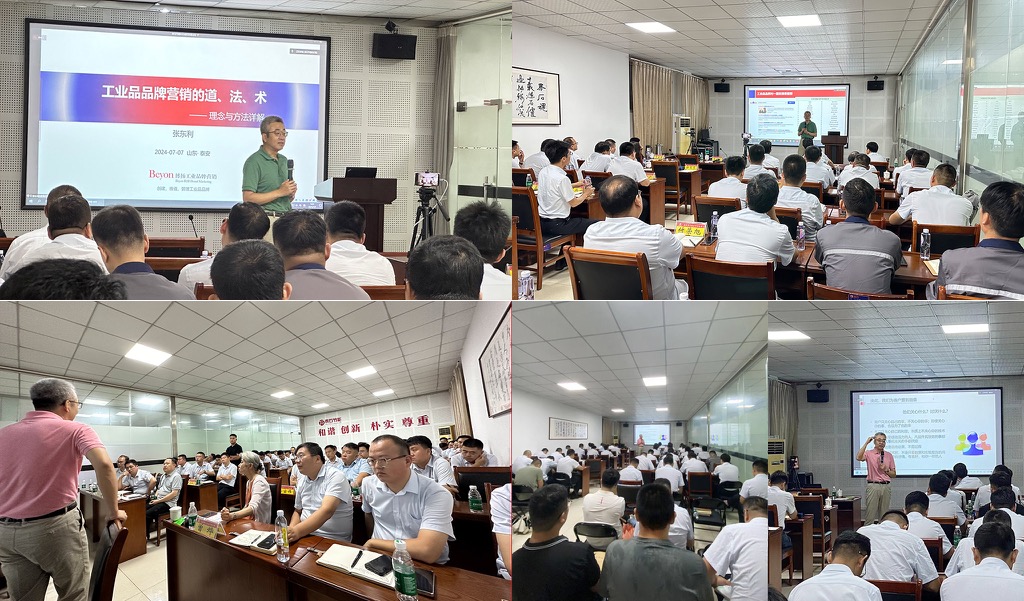 各项工作有序推进的同时,泰石节能在品牌观念和营销行动上有了新的变化,我们还需要把内外部调研、提案及日常沟通磨合等工作产生的效能最大化,按照计划,我们在七、八月分三次对泰石节能的全体相关人员进行了系列培训,张东利老师作为主讲嘉宾分别于7月8日、28日、8月8日在泰石大讲堂举办了《工业品品牌营销的道、法、术--理念与实战》、《以客户思维营销工业产品和解决方案》、《泰石节能如何做内容营销》为主题的系列专题培训会。泰石节能的副董事长、总经理等高层领导亲自出席,他们一再强调品牌建设对公司长远发展的重要性,让大家仔细听、认真想、用心做。三期培训各有侧重,《工业品品牌营销的道、法、术--理念与实战》旨在让员工理解品牌的深层逻辑,明白做品牌的重要性及与每个人的关系;《以客户思维营销工业产品和解决方案》是让泰石节能从厂商思维转换到以市场为中心的用户思维;《泰石节能如何做内容营销》则是分组实操,帮助泰石节能建立一支由不同部门人员组成的写作团队,这样能够持续的产生营销内容素材。几次培训日程也包括项目其他服务内容的推进,我们相继与客户高层、市场营销人员、销售相关人员开展顾问研讨,集中解惑;相继展现品牌视觉识别系统VIS的阶段成果;提案了企业(品牌)综合宣传片的创意方案及解说词脚本;提交了品牌宣传册和其它营销工具的创意方案及内容(企业PPT已经在上一阶段完成确认并交付),各项工作有序推进。8月2号,博扬工业品牌营销创作的泰石节能新形象亮相 “亚洲保温展”,展会现场绝热保温行业协会韩秘书长一行对我们参与指导的泰石节能展位设计和新品牌形象给予高度肯定。